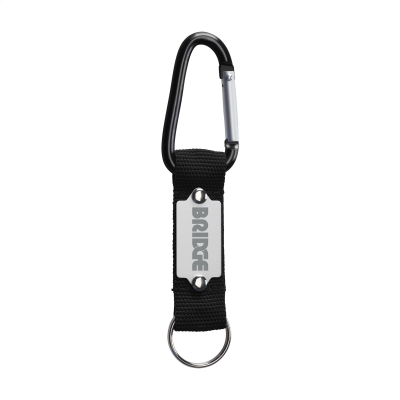 Carabiner Hook with Woven Nylon Strap & Sturdy Keyring. Minimum Quantity: 1